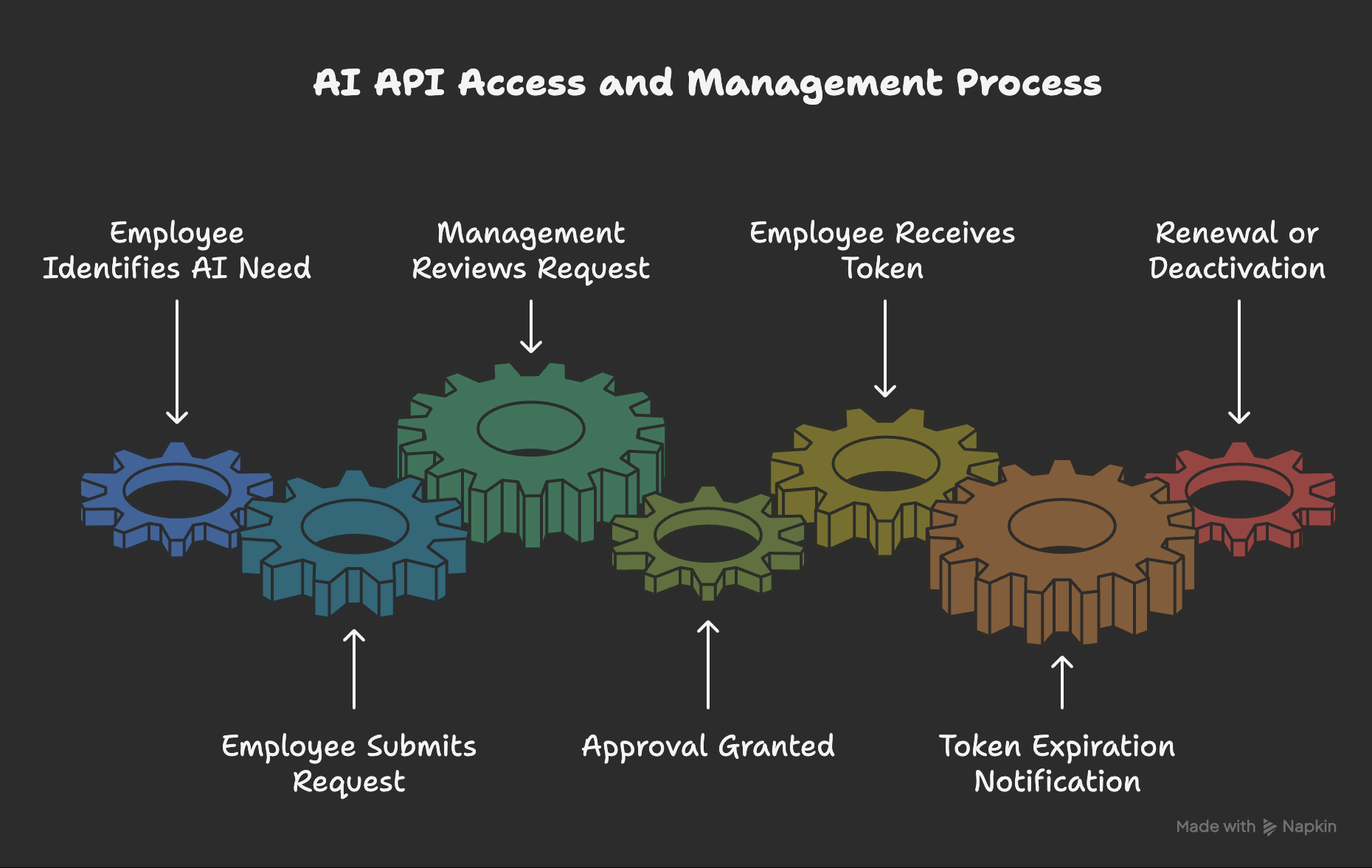 Employees no longer submit expense reports for AI API tokens. Instead, tokens are issued through a governed internal platform, saving manager time, reducing finance workload, and eliminating reimbursement delays.